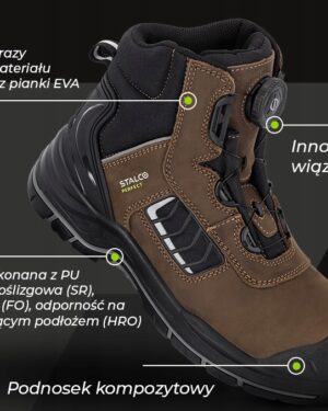 Opis produktu Trzewik STALKER S3S łączy w sobie niezrównaną trwałość, nowoczesny wygląd oraz komfort. Cholewka wykonana z najwyższej jakości naturalnej skóry Crazy Horse, która nie tylko wygląda stylowo, ale również jest bardzo wytrzymała, elastyczna i odporna na otarcia, co zapewnia długotrwałą żywotność i wygodę. Wstawki z materiału OXFORD dodają butom charakteru i zwiększają ich wytrzymałość….