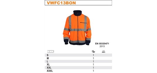 KURTKA POLAROWA OSTRZEGAWCZA O INTENSYWNEJ WIDZIALNOŚCI WKONTRASTOWYCH KOLORACH, POMARAŃCZOWYM-GRANATOWYM, MODEL VWFC13BON