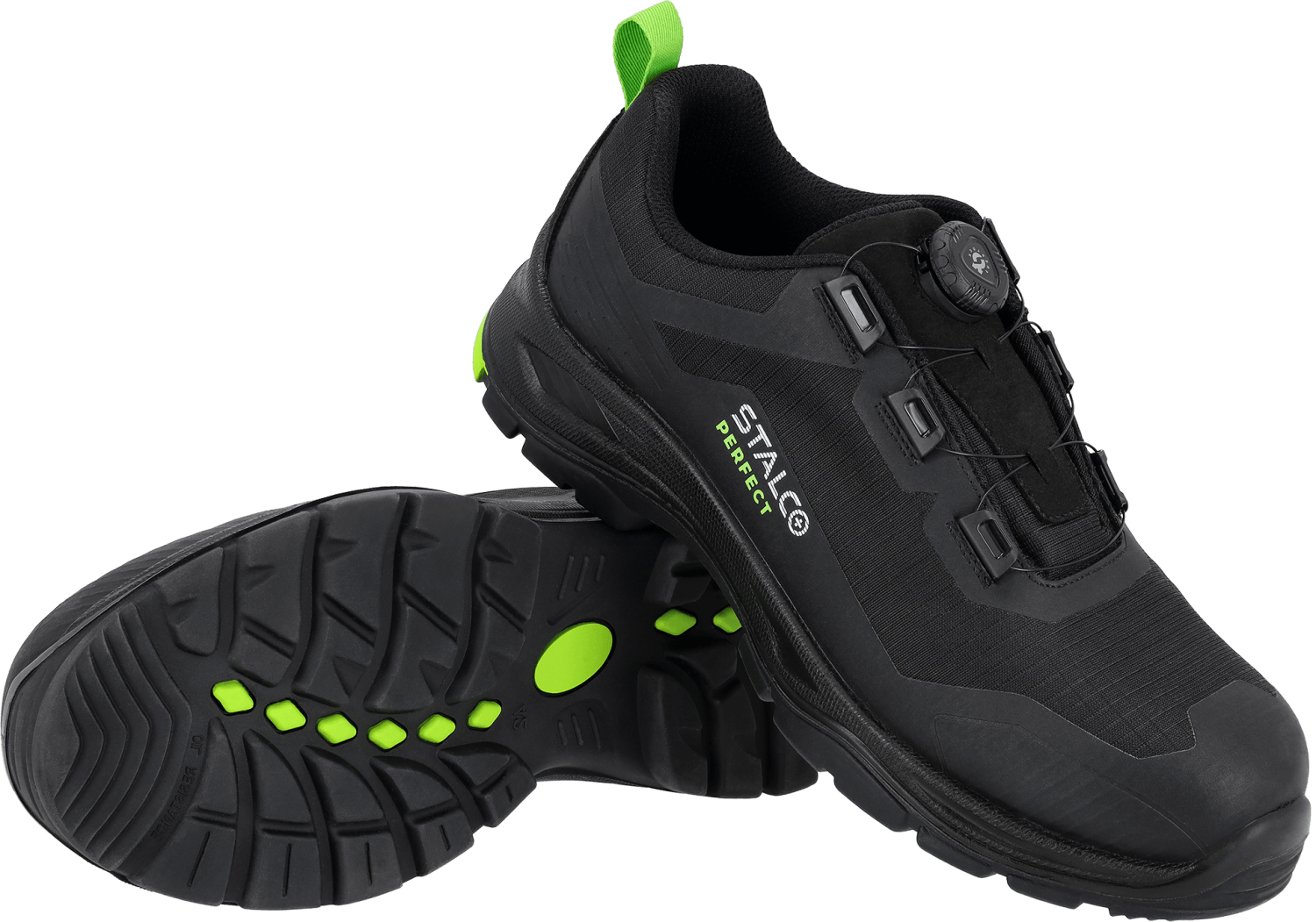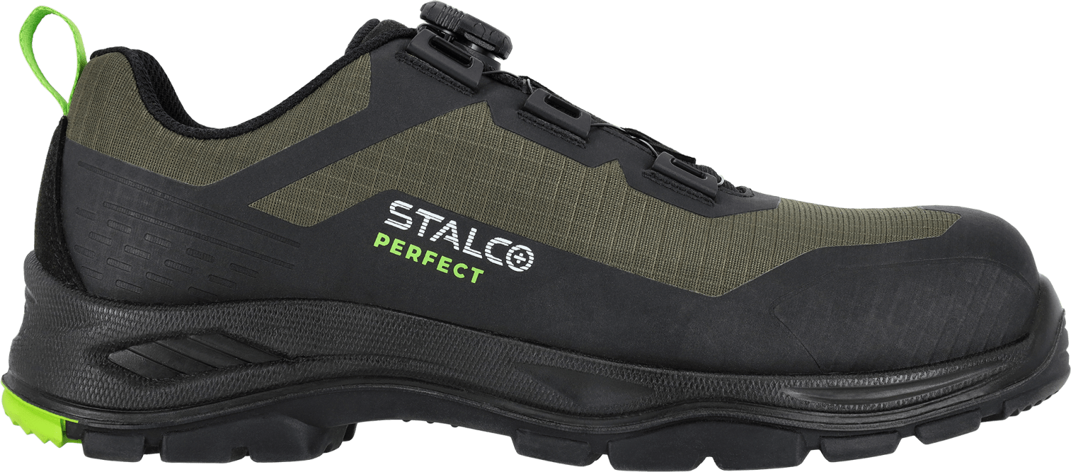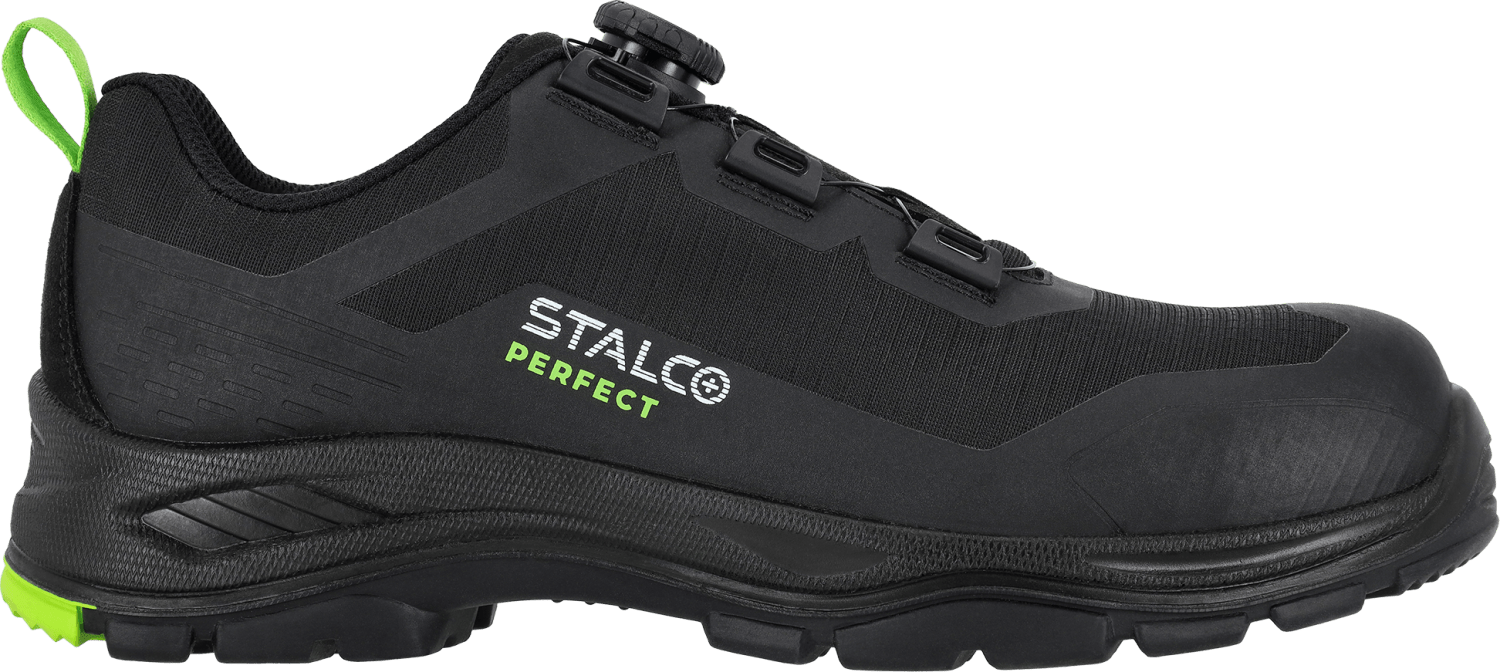 Model wyróżnia się innowacyjnym systemem zapinania na żyłkę z pokrętłem typu Quick Fit, który umożliwia szybkie i precyzyjne dopasowanie buta do stopy jednym ruchem dłoni. Taki sposób zapięcia eliminuje konieczność sznurowania, zwiększa wygodę oraz pozwala błyskawicznie zdjąć lub założyć buty — nawet w rękawicach roboczych.