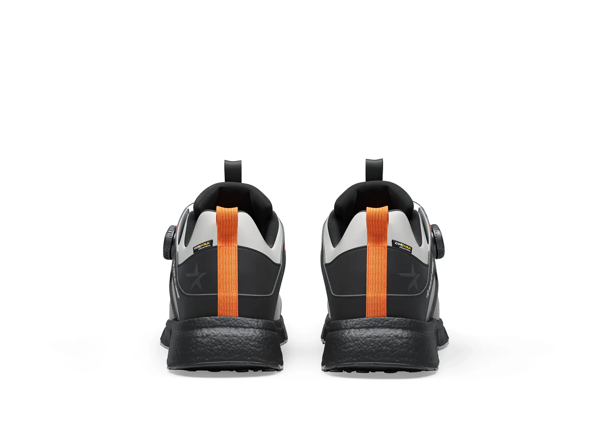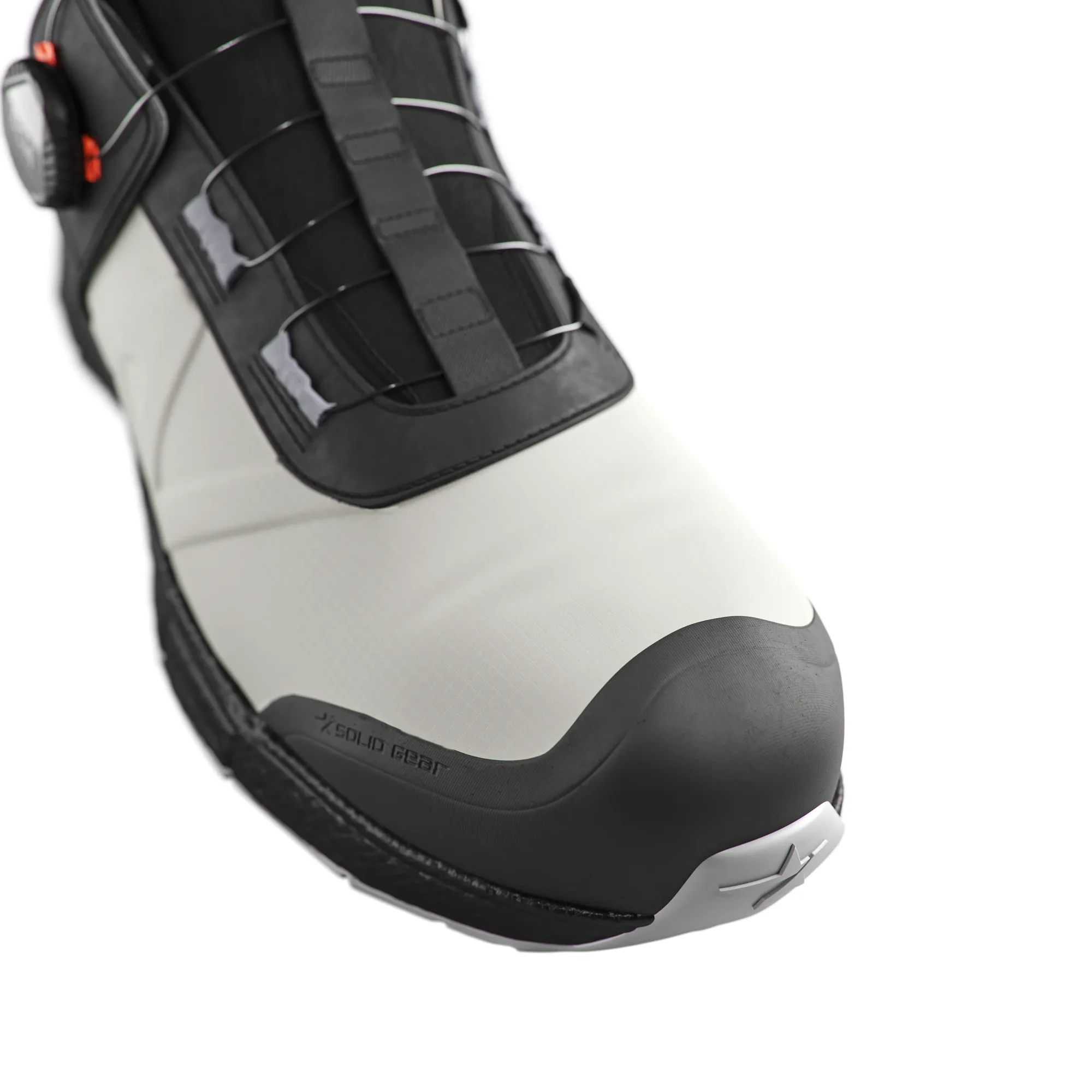 Pracuj szybciej od początku do końca. Bardzo elastyczna podeszwa środkowa z pianki ETPU, przyczepna gumowa podeszwa zewnętrzna i wkładka OrthoLite® Hybrid zapewniają wyjątkową wygodę i funkcjonalność. Cholewka z tkaniny CORDURA re/cor™ ripstop, udoskonalony język i całkowicie nowy zapiętek z materiału z recyklingu podkreślają jego rewolucyjną naturę. Dopełnienie stanowi podnosek NANO, system zapięcia BOA® Fit System i czysta monochromatyczna kolorystyka przełamana odrobiną pomarańczowego koloru charakterystycznego dla Solid Gear. Ochrona ESD zgodna z normą EN IEC 61340-5-1:2016.