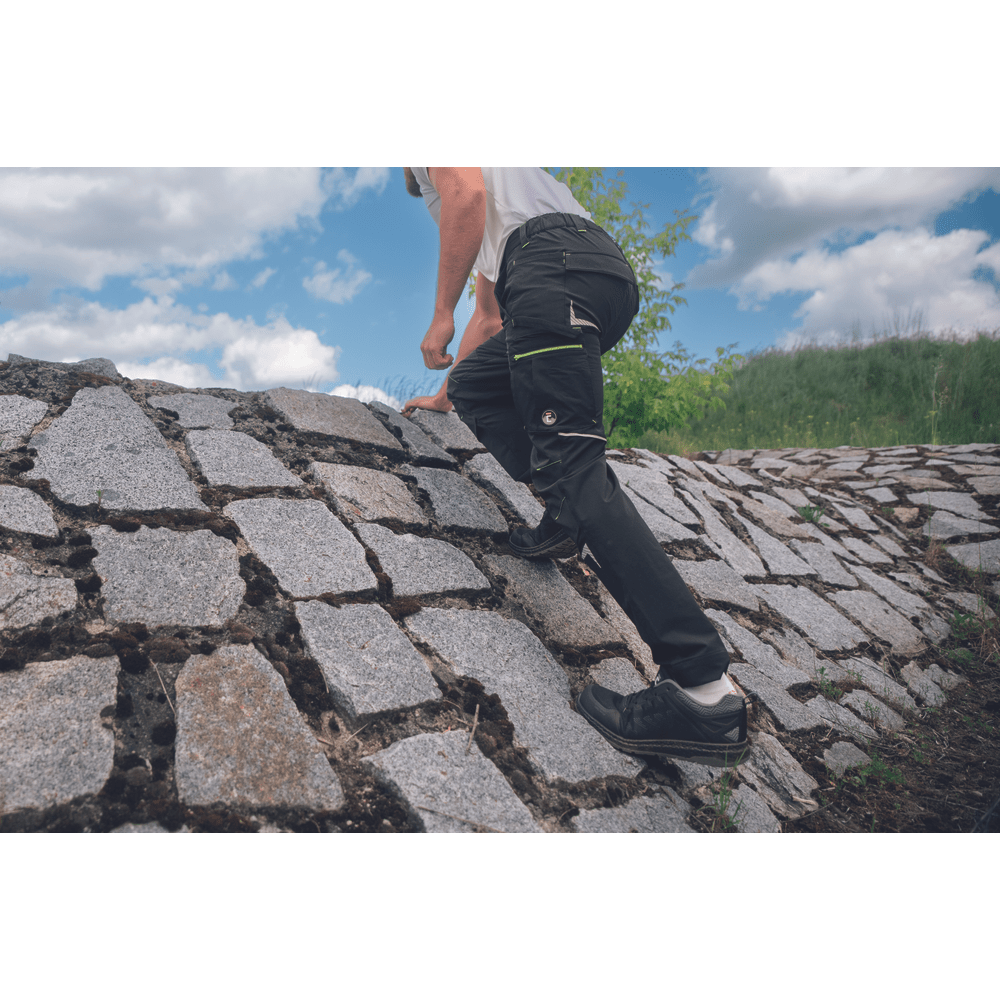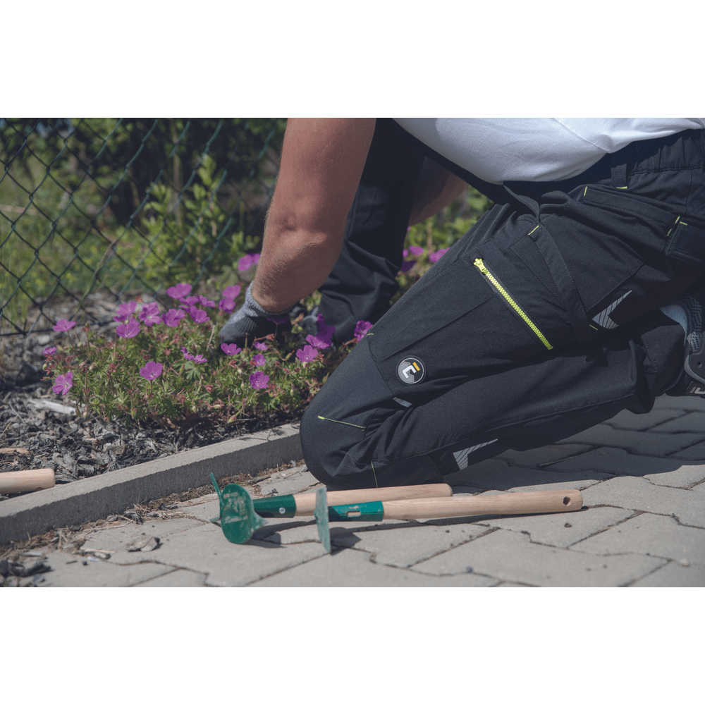 • wygodne, męskie spodnie wykonane z materiały typu stretch • wykończone elementami odblaskowymi • wzmocnienia na kolanach z materiału poliestrowego typu Oxford; możliwość włożenia nakolanników • 2 kieszenie przednie • 2 kieszenie tylne • 2 wielofunkcyjne kieszenie udowe