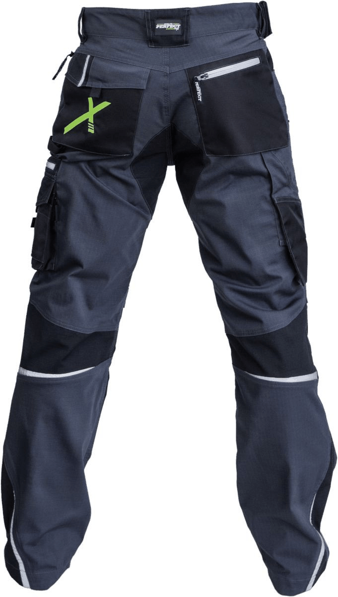 Spodnie wykonano z elastycznej tkaniny o charakterystyce softshellu, która pracuje razem z ciałem i nie ogranicza mobilności. Aktywny pas z podwyższonym stanem z tyłu stabilizuje odzież podczas schylania oraz pracy w pozycji klęczącej. Otwory wentylacyjne zapinane na zamek umożliwiają regulację cyrkulacji powietrza i ograniczają przegrzewanie.
