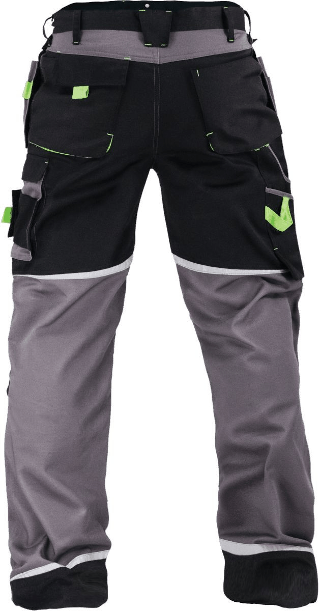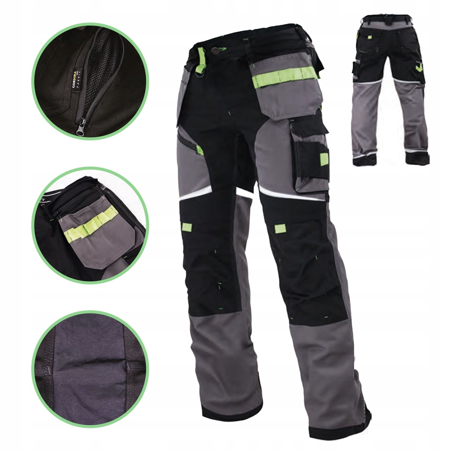 Komfortowy krój i zapięcia Spodnie są wykonane w nowoczesnym i wygodnym kroju. Podwyższony pas w tylnej części zapobiega podwiewaniu, a szerokie mocne szlufki pozwalają utrzymać wygodnie pasek. Zwężane na dole nogawki nie podwijają się pod buty. W obrębie rozporka i kieszeni monterskich zastosowano trwały metalowy zamek YKK. Można go łatwo rozpinać nawet w rękawicy roboczej i bez obaw o zniszczenie drobinkami piasku i innymi zanieczyszczeniami.