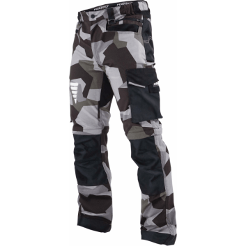 Spodnie robocze odpinane MORO X to element odzieży roboczej o uniwersalnym zastosowaniu. Zostały wykonane z tkaniny bawełnianej z dodatkiem poliestru celem wzmocnienia i domieszką elastanu. Dzięki takiemu zestawieniu materiałów odzież jest przyjazna dla skóry ciała, a dzięki pewnej elastyczności lepiej dopasowuje się do ciała. Poliestrowy udział gwarantuje trwałość, odporność na uszkodzenia mechaniczne, a także łatwe usuwanie zabrudzeń. Spodnie mają nowoczesny krój i dwa ciekawe warianty kolorystyczne. Uniwersalna stylistyka moro i trwałość sprawdzą się przy wielu pracach od brukarskiej, przez murarską, instalacyjną, elektromechaniczną, ślusarską po transportowo-logistyczną. W spodniach zastosowano elementy odblaskowe, a także kontrastującą kolorystykę, dlatego pracownik jest bardziej widoczny.