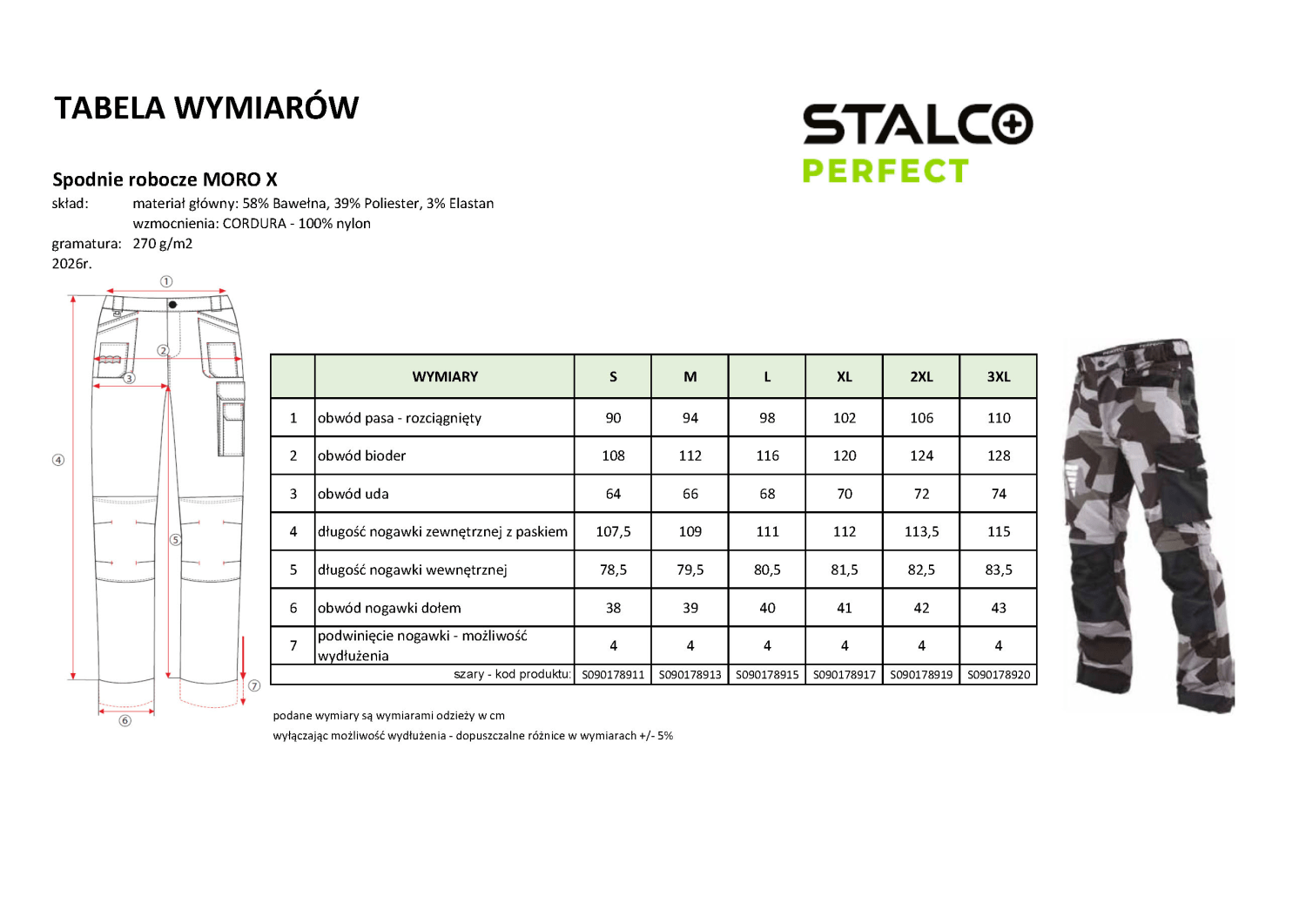 - nogawki do wydłużenia o 4cm