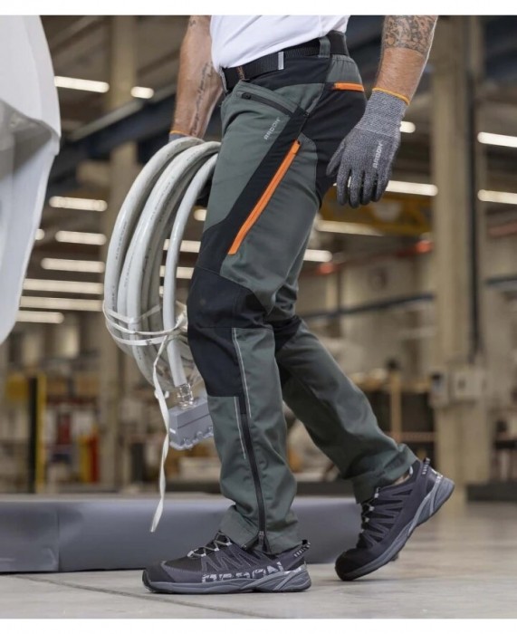Męskie spodnie trekkingowe łączą w sobie lekkość, oddychalność i wysoką wytrzymałość. Zostały wyposażone we wkładki wykonane z mocnego materiału ripstop, który zapewnia długą żywotność i ochronę przed rozdarciem i ścieraniem. Powłoka wodoodporna BIONIC FINISH® ECO chroni przed wodą i zabrudzeniami, wspomaga szybkie schnięcie, a jednocześnie zachowuje oddychalność. Impregnacja ta została wykonana w 90% na bazie odnawialnych surowców naturalnych i nie zawiera PFAS – tzw. „wiecznych chemikaliów”. Zachowuje swoją skuteczność nawet po wielokrotnym praniu i w porównaniu z tradycyjnymi powłokami jest przyjazna dla środowiska i zdrowia. Nowoczesny krój i przemyślany design sprawiają, że te spodnie trekkingowe są idealnym wyborem zarówno w plener, jak również do miasta. Spodnie zapewniają maksymalną swobodę ruchów i komfort na każdym kroku. Są lekkie, a dzięki bocznym zamkom wentylacyjnym skutecznie odprowadzają ciepło, dzięki czemu sprostają każdemu wyzwaniu. Spodnie zachwycają praktycznymi detalami, takimi jak kieszenie zapinane na zamek do przechowywania drobiazgów, możliwość poszerzenia nogawek za pomocą zamków czy ukryty haczyk do przypięcia nogawek do obuwia outdoorowego. Elementy odblaskowe zwiększają widoczność i bezpieczeństwo podczas poruszania się w warunkach słabego oświetlenia. Wyrusz na przygodę w spodniach, które zapewnią Ci duży komfort i oryginalny design.